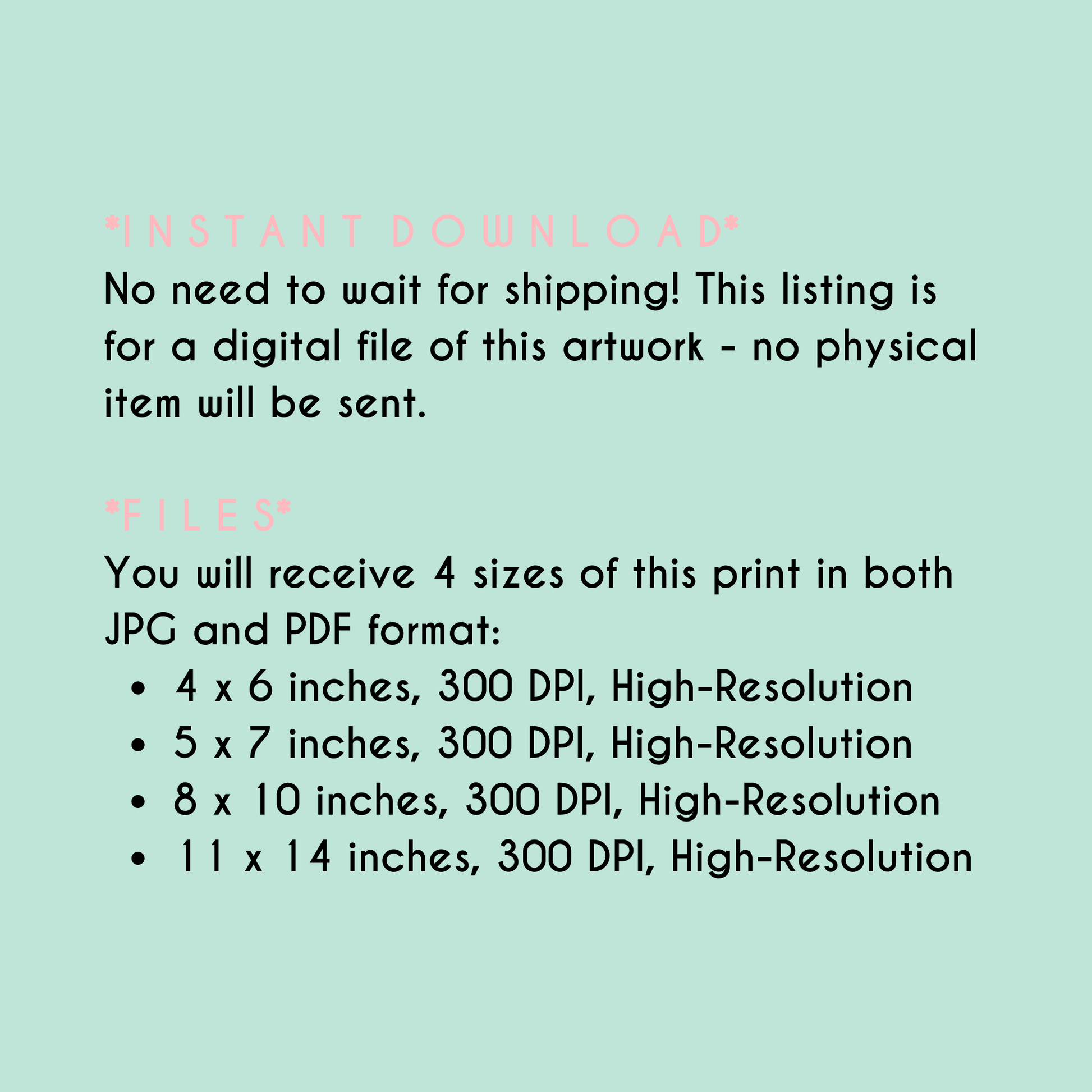 *F I L E S* You will receive 4 sizes of this poster in both JPG and PDF format: