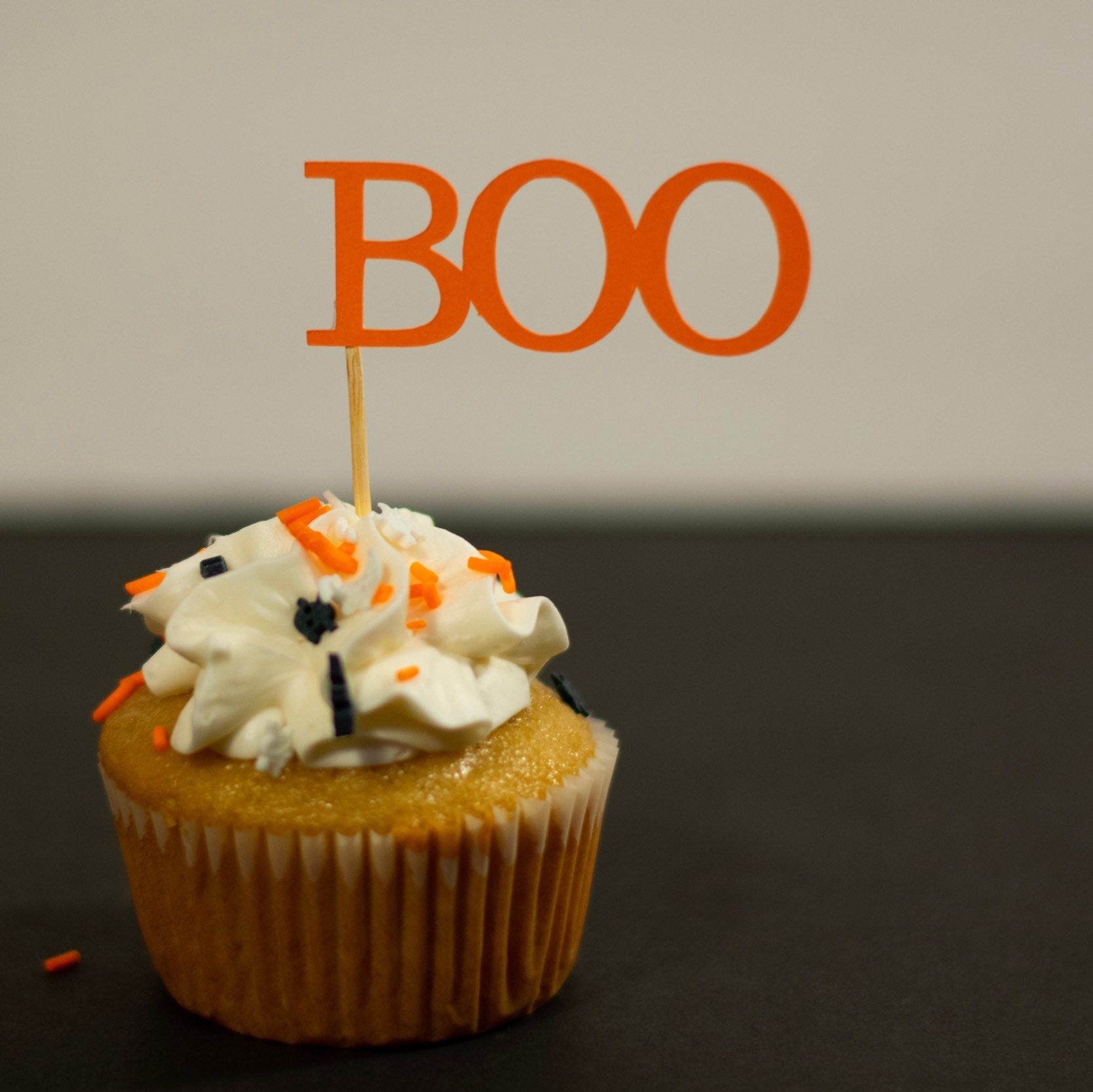 These BOO cupcake toppers are more adorable than they are scary! Perfect addition to your Halloween-themed party decor. Select the quantity from the dropdown list