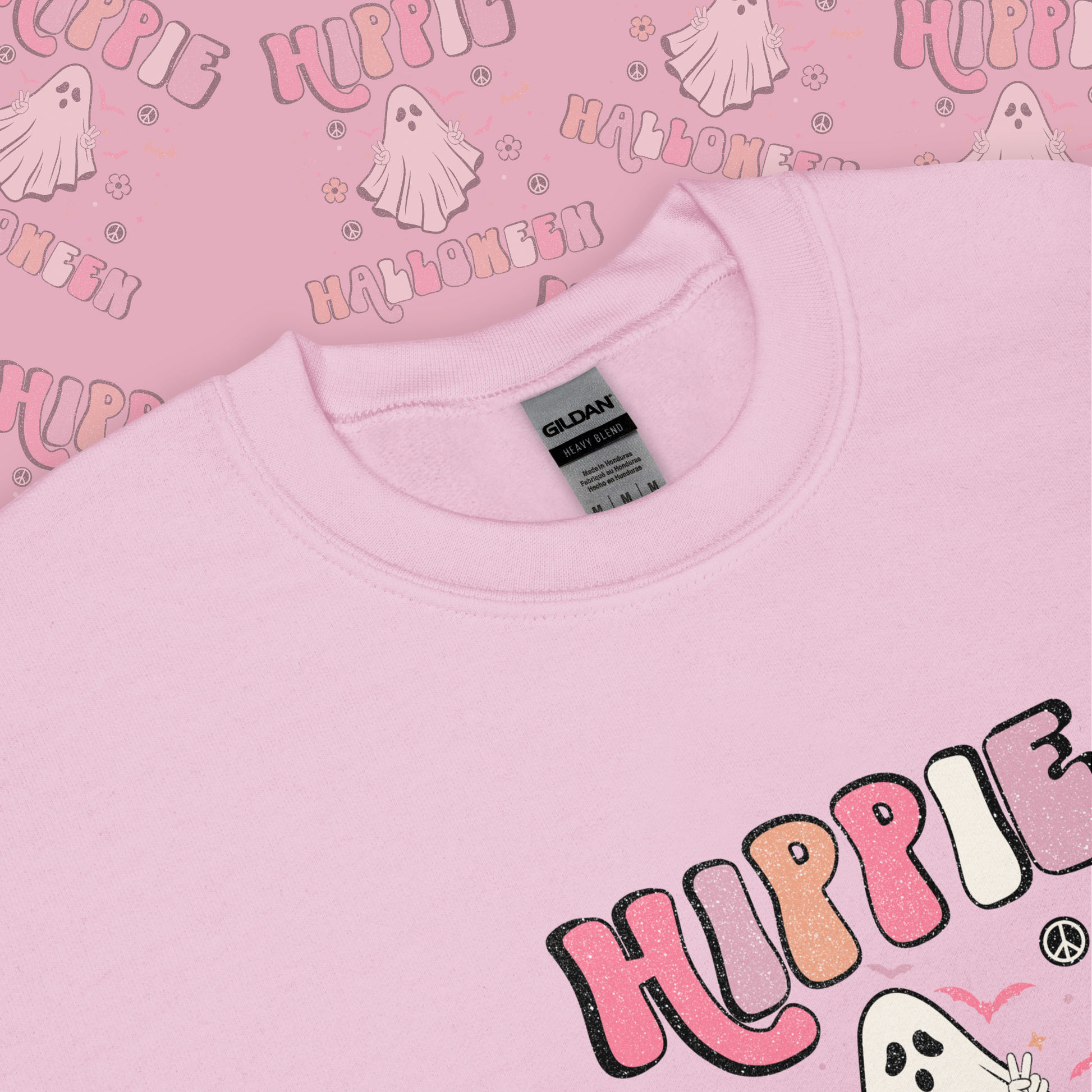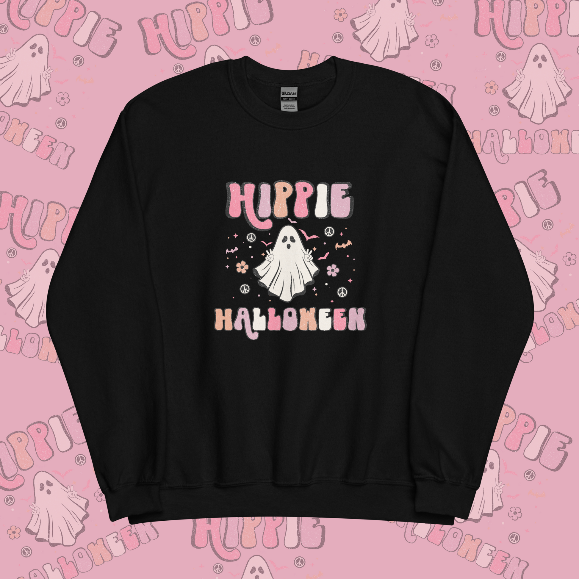 You will look too cute in this hippie ghost sweatshirt! It features a cute ghost spreading peace and love, peace signs, bats, and sparkles. This sweatshirt is perfect for the Fall and Spooky Season, or all year long! It's super comfy and pairs well with jeans, leggings, or joggers.