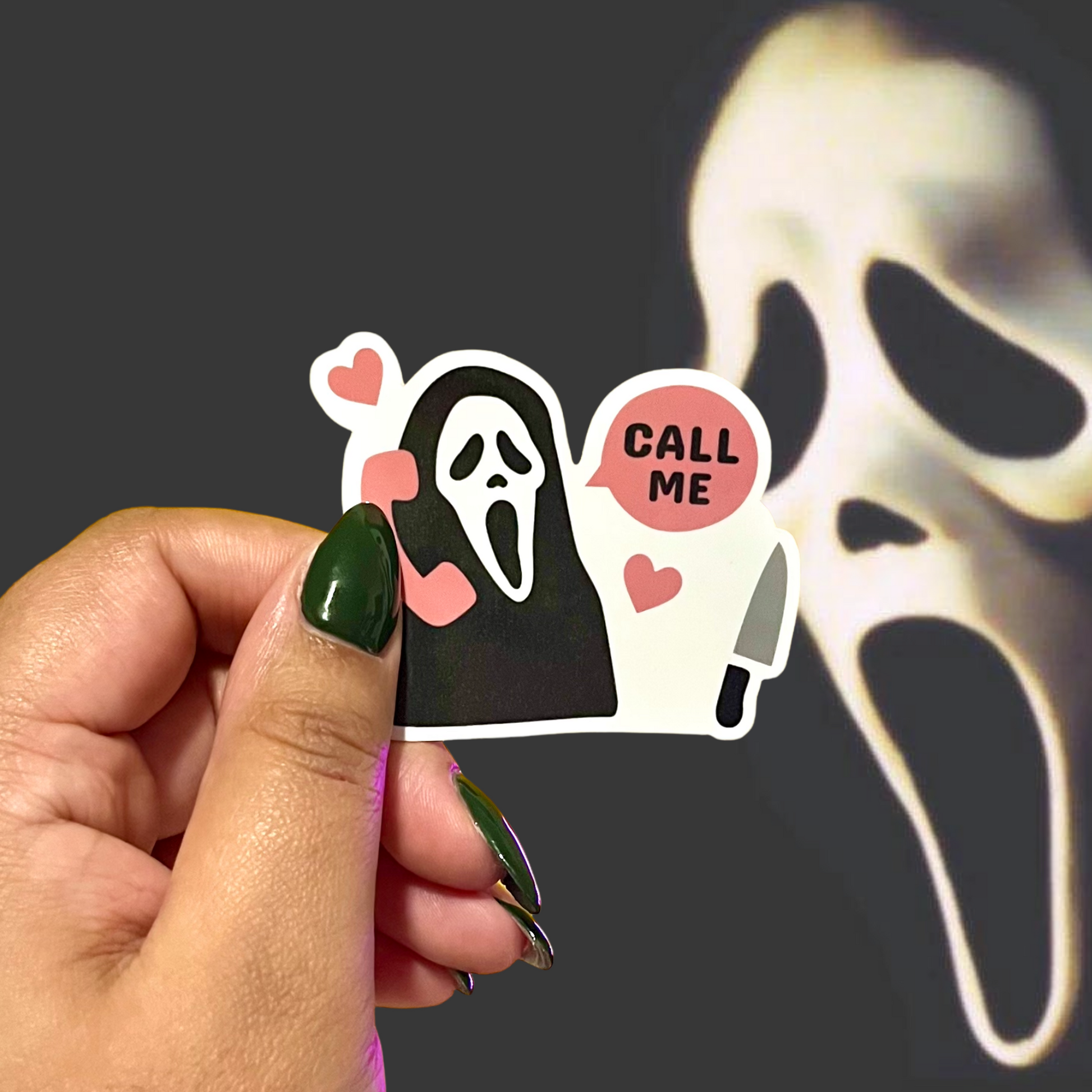 "Do you like scary movies?" ๐ช This Scream sticker is a great addition to your sticker collection, and perfect for Halloween. Can be added to notebooks, water bottles, laptops, and so much more.