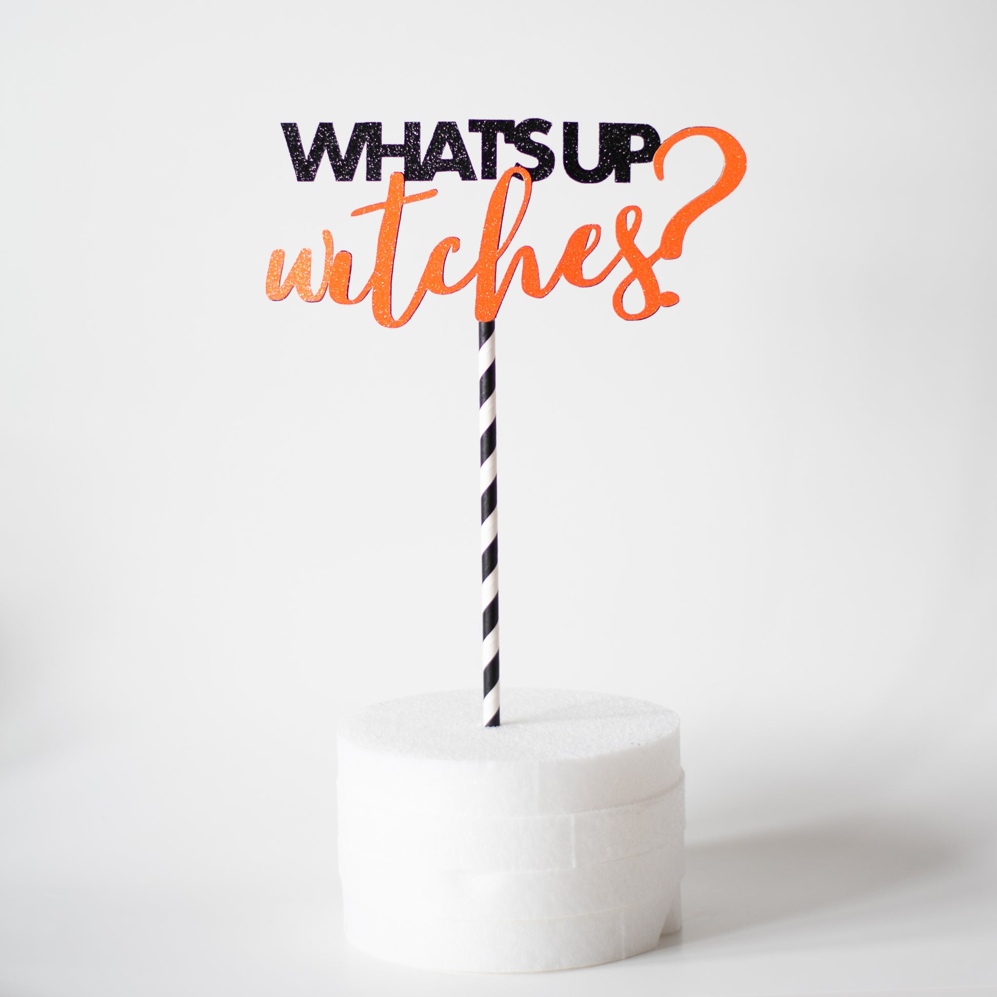 what's up, witches? This fun cake topper is perfect to complete your Halloween-themed party decor.